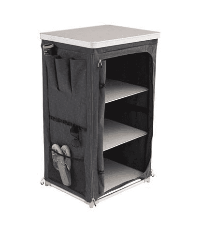 Priročna omarica za shranjevanje iz poliestra z aluminijastim okvirjem.