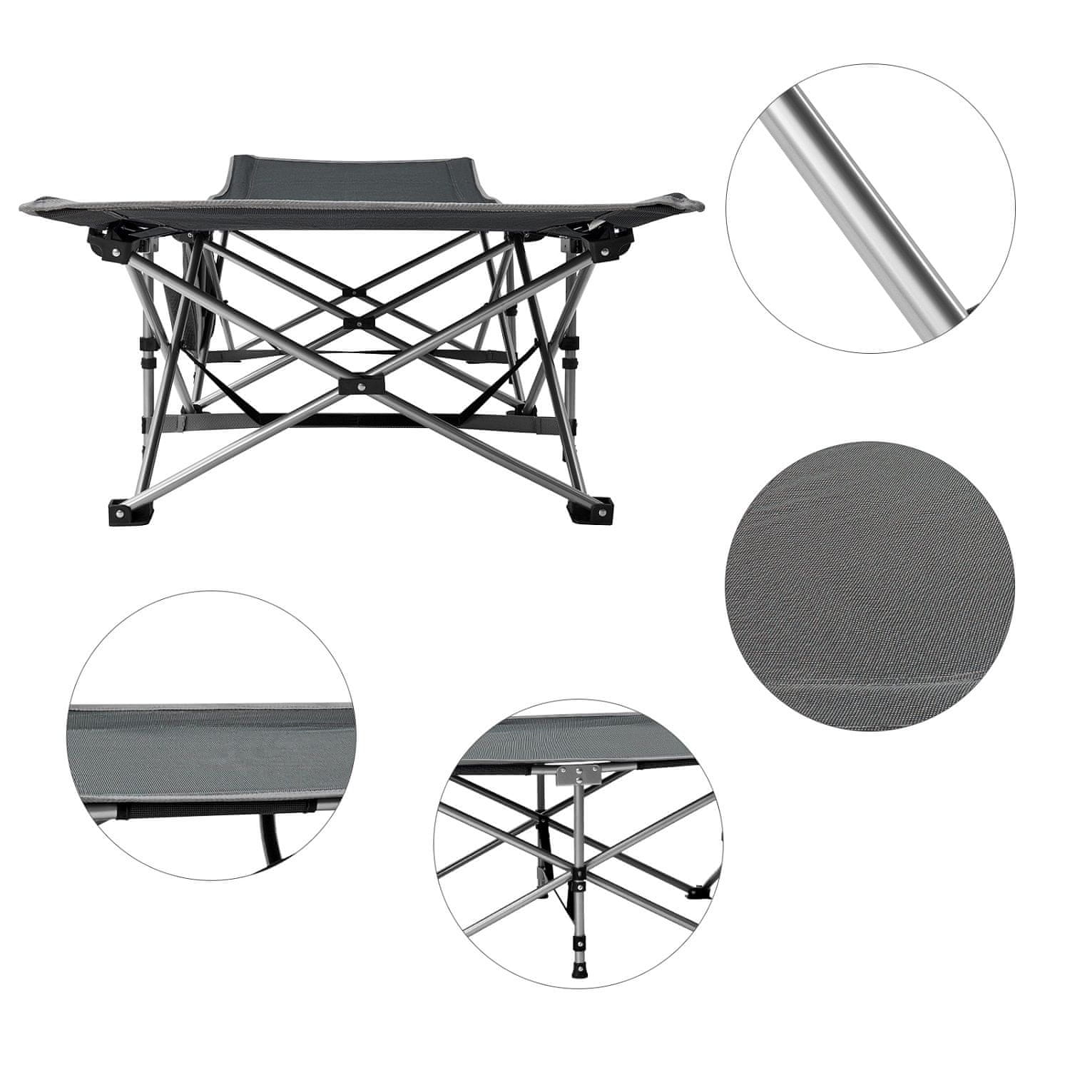 Udobni zložljivi ležalnik za kampiranje – luksuzni zložljivi ležalnik za kampiranje z jekleno konstrukcijo. Celoten opis