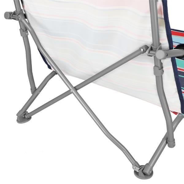 > Nasloni za roke so opremljeni s penasto prevleko za največje udobje med poležavanjem. Za lažje prenašanje lahko stol zložite in ga pospravite v priloženo torbo.