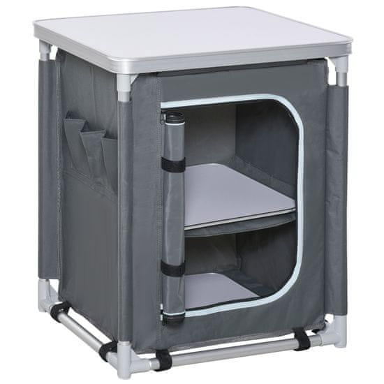 OUTSUNNY kuhinjska omarica za kampiranje z 2 policama in torbo za prenašanje, aluminij in tkanina oxford 60x49x70cm siva