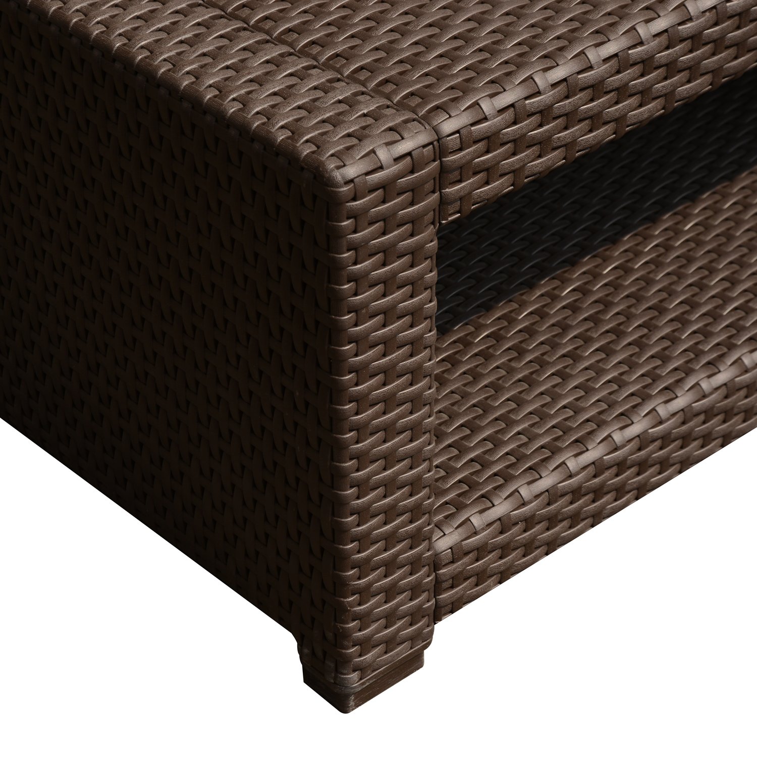 Vsestranska mizica v preprostih, a zelo elegantnih in sodobnih linijah je primerna za vrt, terase in balkone. Izdelan je iz visokokakovostne plastike PP z učinkom tkanega ratana. Plastika PP je material, ki je zelo odporen proti vremenskim vplivom in obrabi. Je tudi lahek in enostaven za premikanje. Za čiščenje uporabite samo vodo. Ponuja razkošno in prostorno polico za urejene predmete.Vsebine: