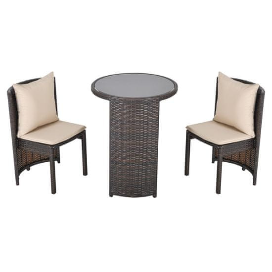OUTSUNNY vrtna ali zunanja miza in stoli iz ratana, 3-delni komplet, rjava in bež