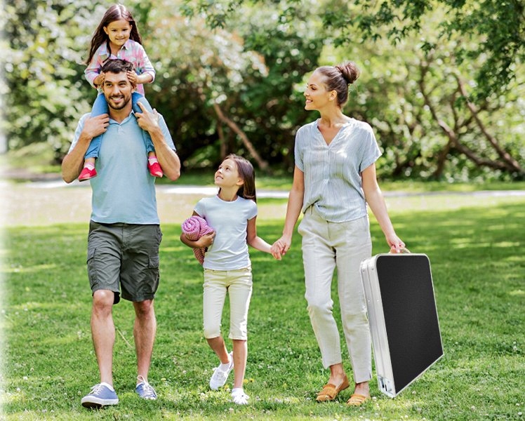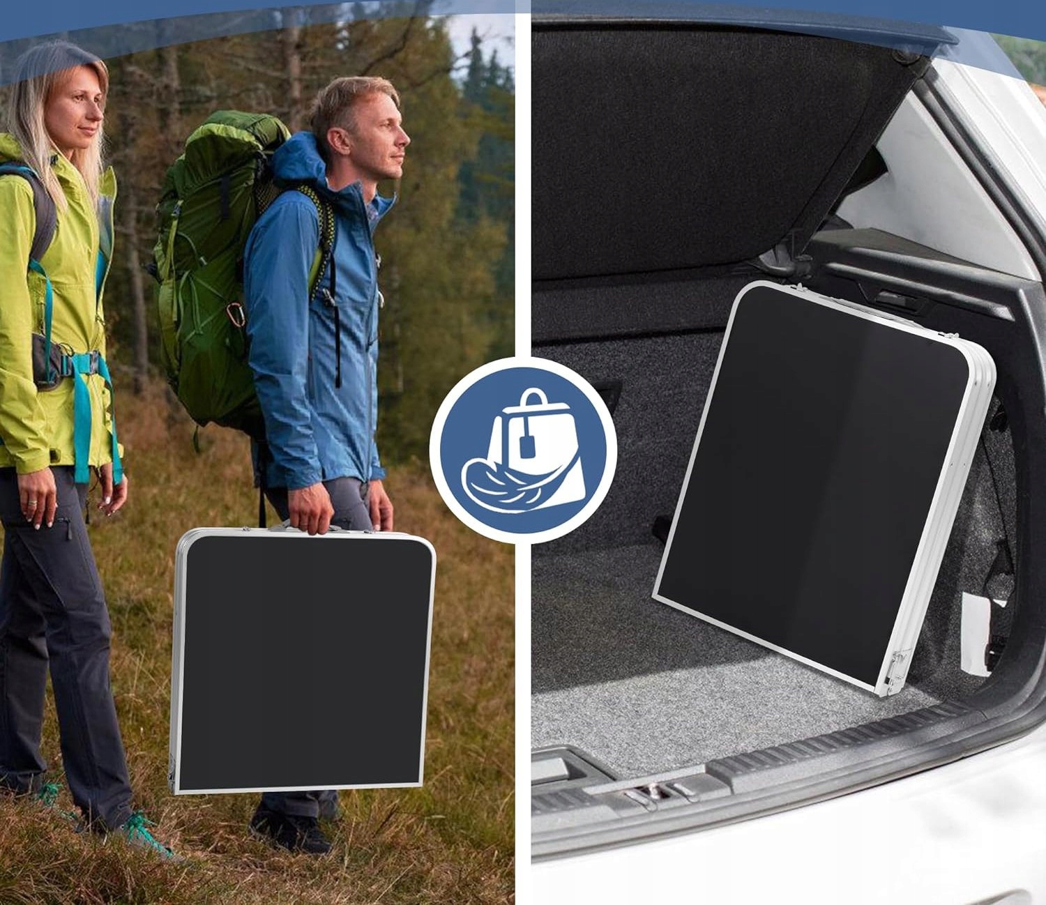 ✅ Ta prenosna miza se zloži v priročen kovček, zato jo lahko enostavno vzamete s seboj na plažo, v park ali na kampiranje. Uživajte v udobju doma, kamor koli že greste.