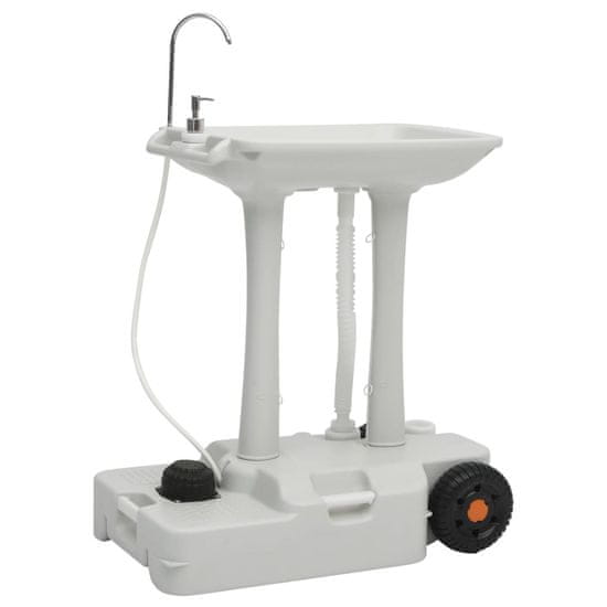 Stojalo iz materiala HDPE je močno, vremensko odporno in preprosto za čiščenje. Kamping postaja za umivanje rok je opremljena s 5-litrskim dispenzerjem za milo in 30-litrsko posodo za svežo vodo. Ima dizajn za uporabo brez rok, saj lahko z nogo pritisnete na črpalko, da iz pipe priteče voda. Umivalnik s stojalom ima dve vgrajeni kolesi za enostaven transport. S tem premičnim stojalom za umivanje rok lahko poskrbite za bolj priročno in udobno kampiranje!