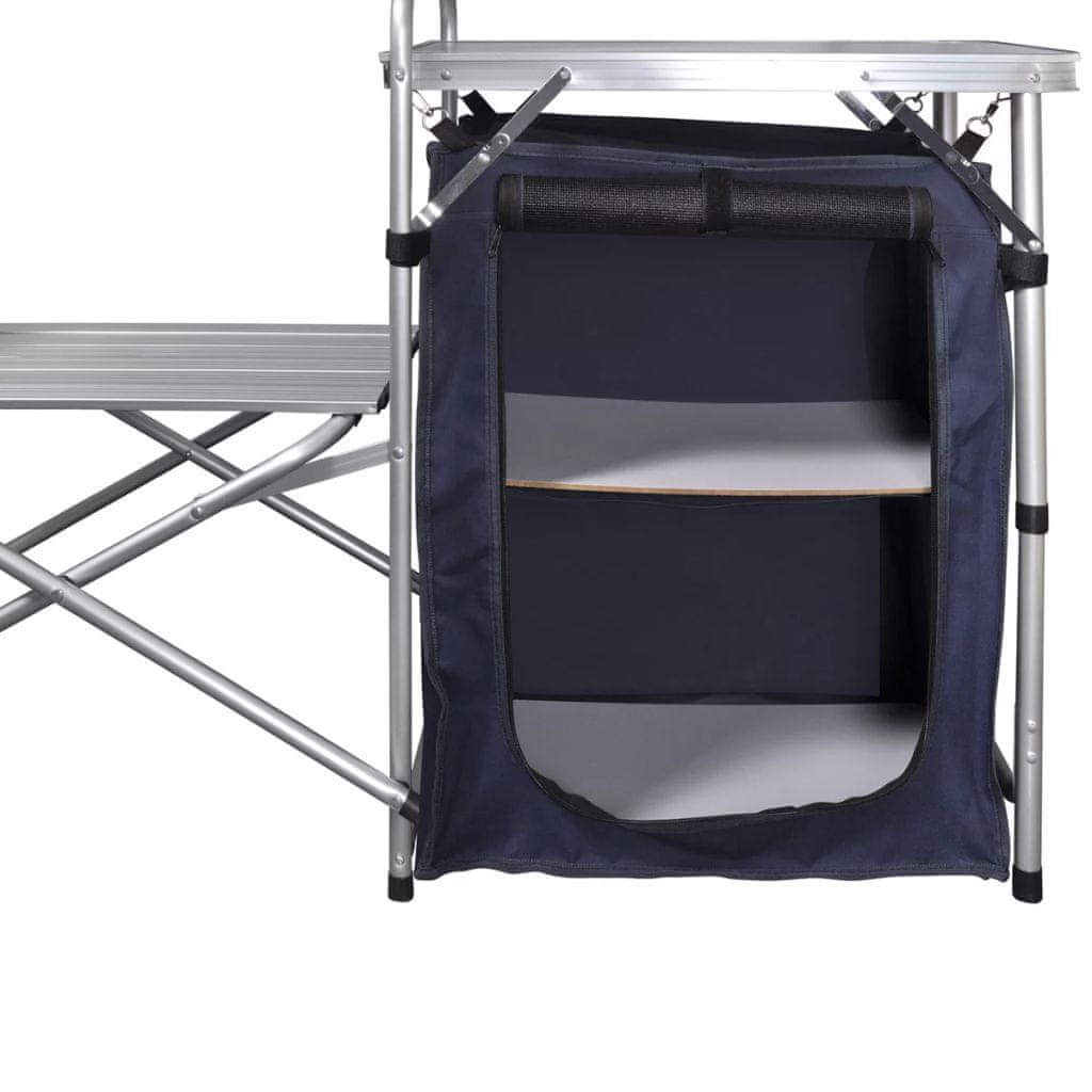 Vidaxl Zložljiva kamp kuhinja z vetrobranom iz aluminija