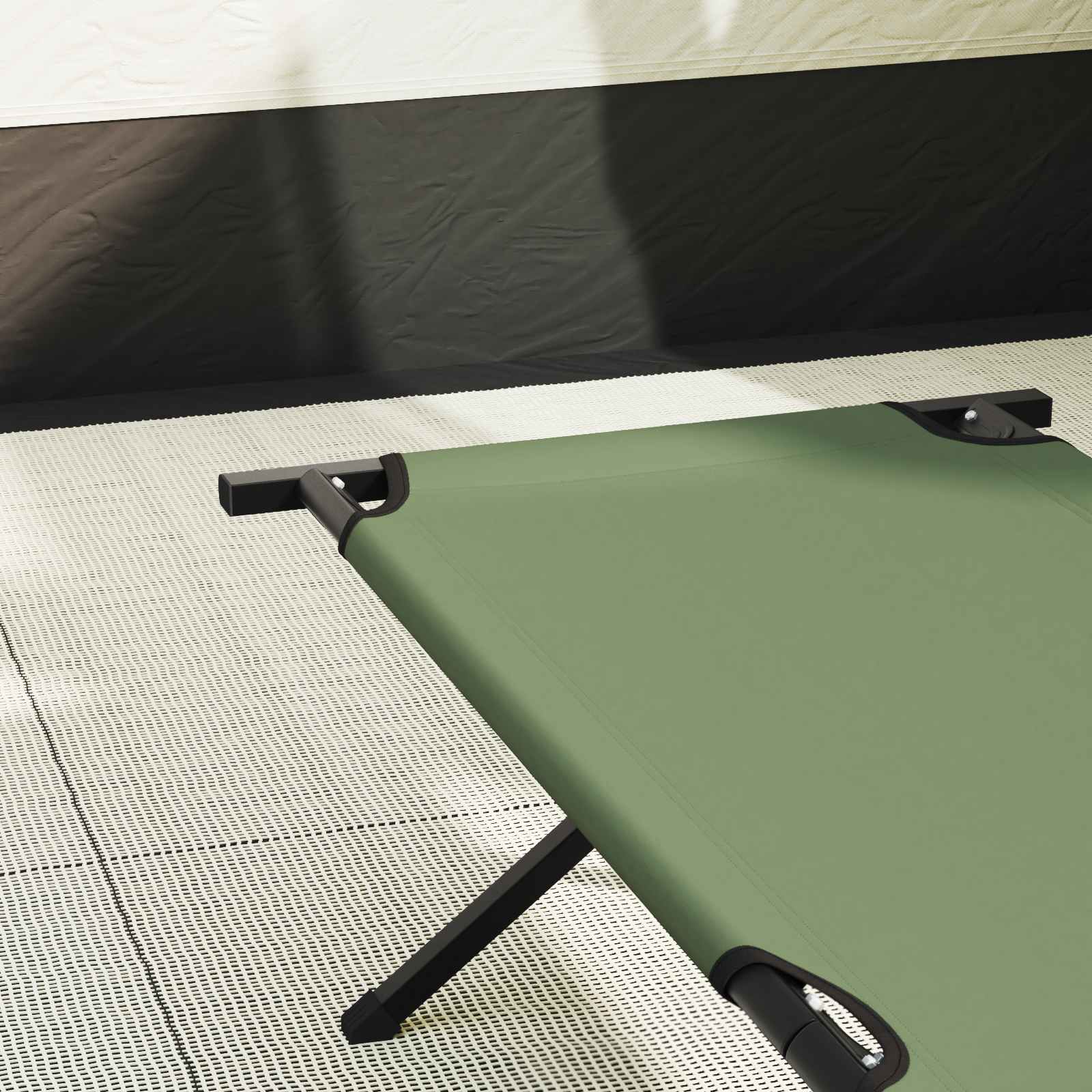• Kvalitetni materiali: Zgrajena iz močne Oxford tkanine, ta postelja nudi odpornost proti vremenskim razmeram in dolgo življenjsko dobo. Robusten jeklen okvir podpira udobno površino, kar pomeni stabilno in varno mesto za spanje na prostem.