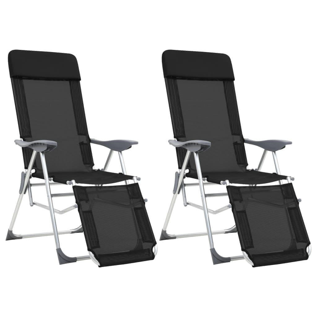 Vidaxl Zložljivi stoli za kampiranje 2 kosa z naslonjalom za noge črni