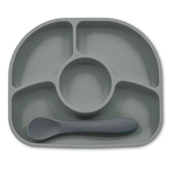 bblüv silikonski krožnik z žlico Yümi Grey