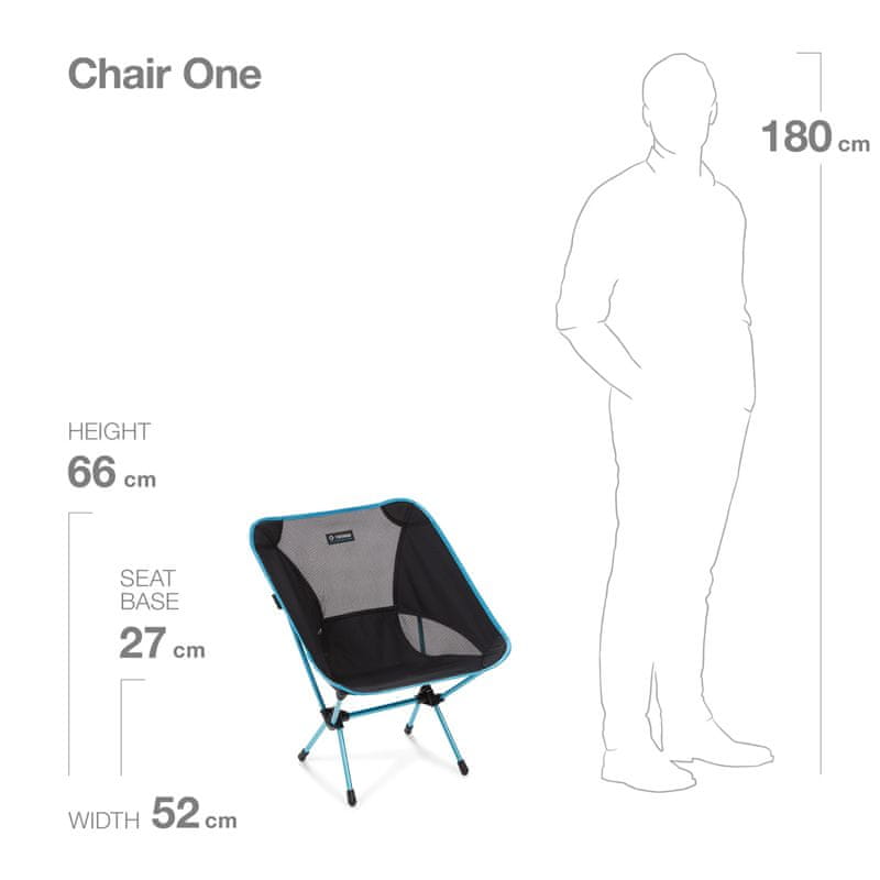 Kamping stol Helinox Chair One je izjemno lahek in kompakten, obenem pa močan in udoben. Zelo uporaben je za popotnike, ki imajo omejen prostor za prtljago, saj ga je moč zložiti tako, da zasede zelo malo prostora. Chair One je vsestranski, saj njegova teža in velikost, ko je zložen, omogočata, da ga zložite v nahrbtnik in ga vzamete na pohod, na festival ali kampiranje.