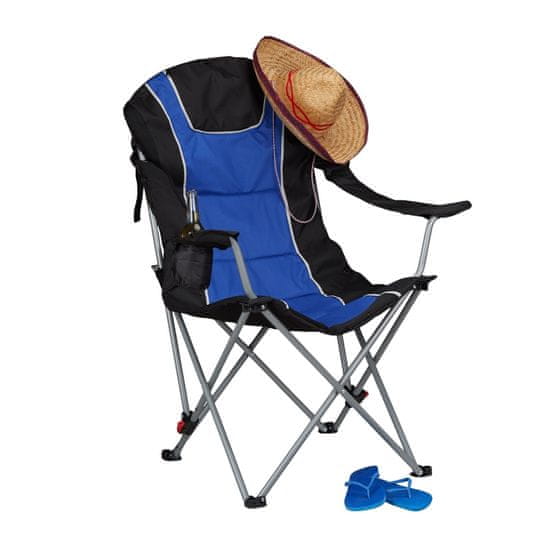 Odličen za kampiranje in prosti čas ta zložljiv kamping stol nudi udobno sedenje z oblazinjenimi nasloni in nastavljivim naslonjalom ter praktičnim držalom za pijačo primeren za dolgotrajno uporabo na prostem. Celoten opis