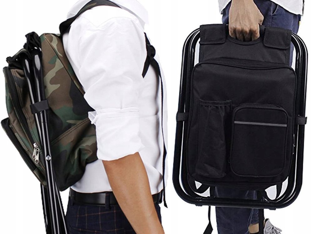 Torbo lahko nosimo kot nahrbtnik, saj ima dve naramnici. Nahrbtnik ima en velik izoliran predal, v katerem lahko shranimo na primer hladne pijače. Poleg tega ima manjši žep z zadrgo, žep za steklenico in tretji manjši žep za drobne predmete. Ročaji stola so oblazinjeni s peno za udobnejše nošenje.