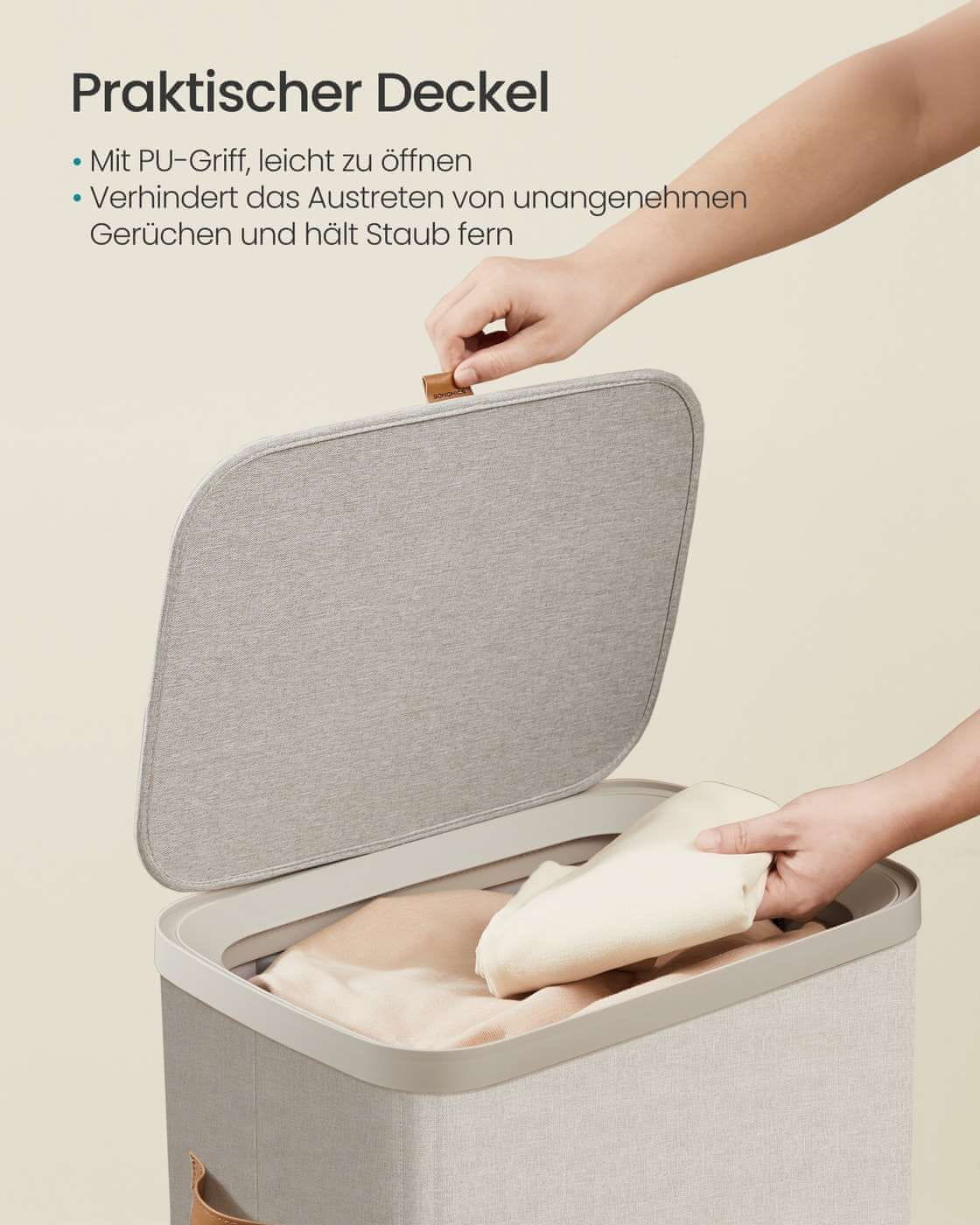 Songmics Košara za perilo 2 predelka 42x32x75 cm bež