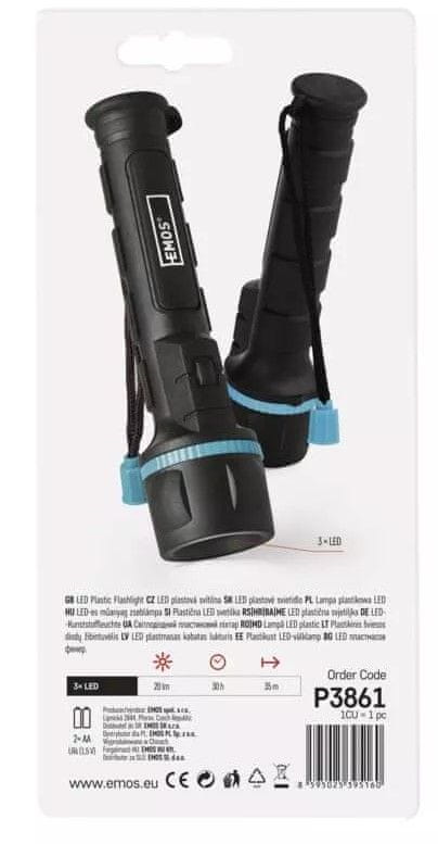Emos LED svetilka, gumijasta, 20 lm, 35 m, z enim načinom osvetlitve, 30-urnim časom svetenja in 35-metrskim dosegom svetlobe. Celoten opis