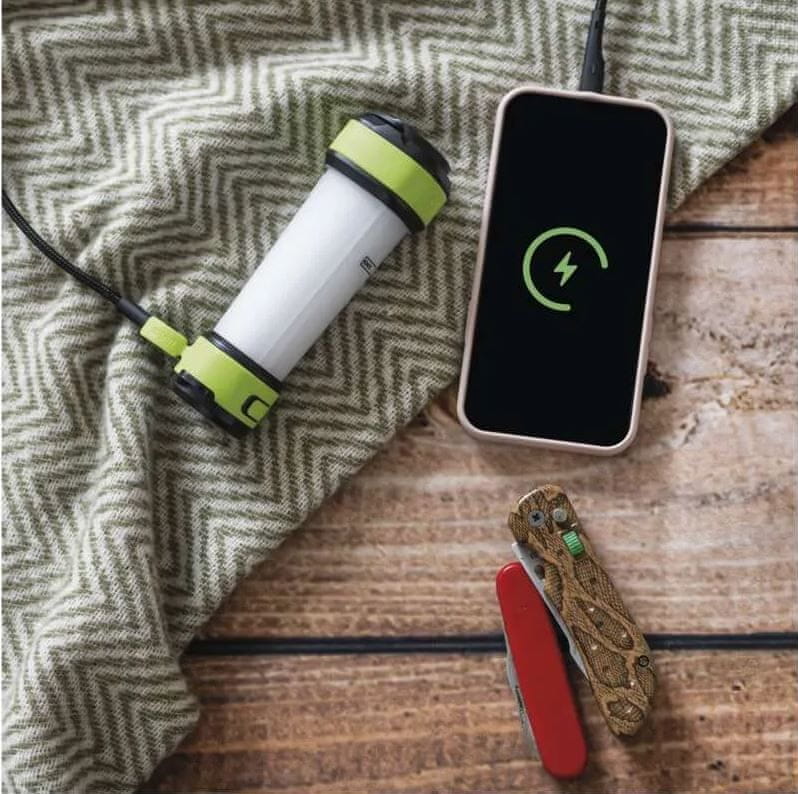 Kamp svetilka nudi sedem načinov delovanja, polnilno Li-Pol baterijo z vzdržljivostjo do 19 ur, svetilnost 360 lm, ki osvetli do 190 m in priročno funkcijo powerbank. Celoten opis