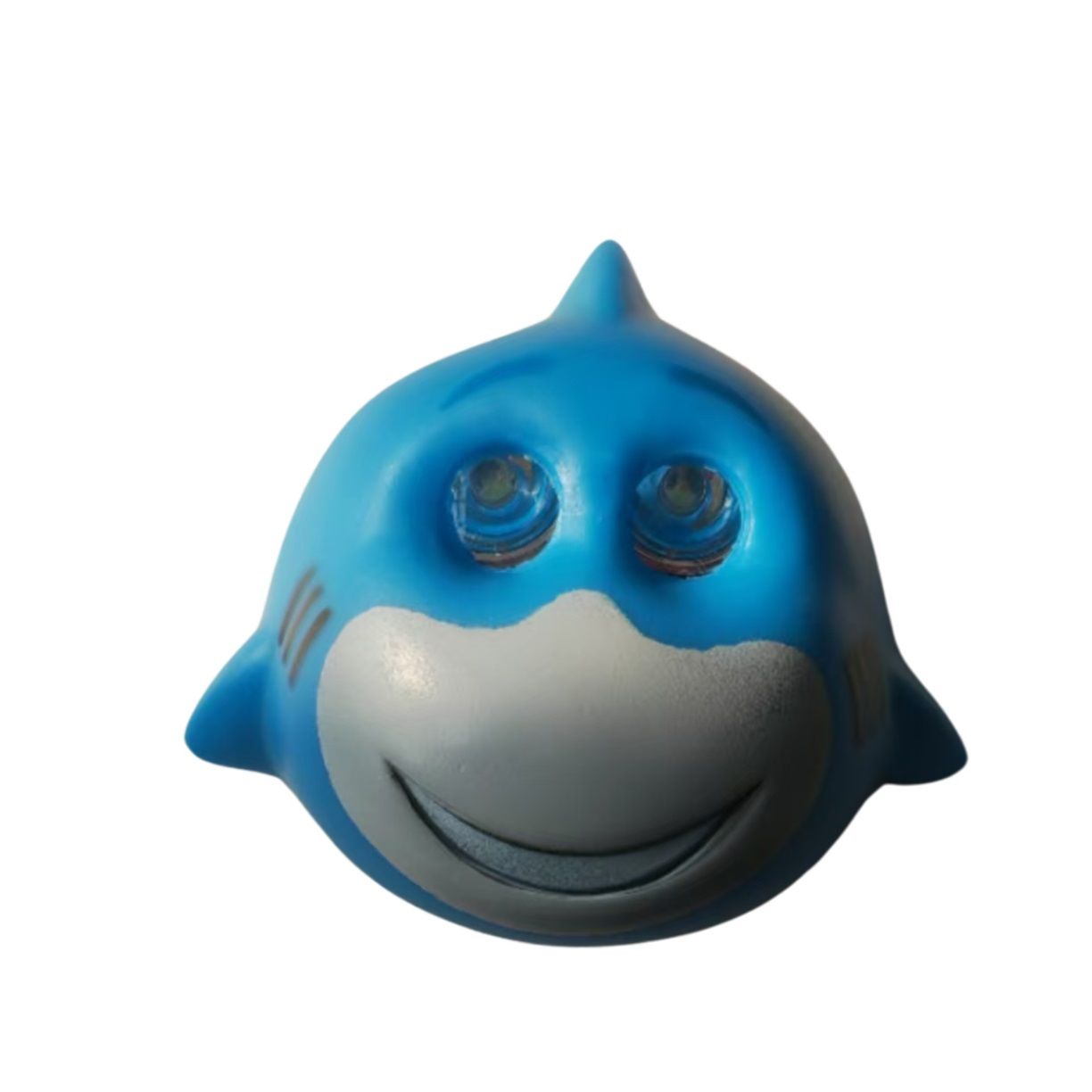 Otroška naglavna LED svetilka OXE z motivom morskega psa. Napajanje žarometov: 2×AAA. . Celoten opis