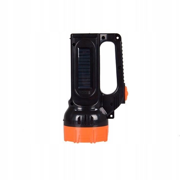 Polnilna svetilka z 1,5 W sončno celico in 14 × 2,1 W SMD LED diodami. Polnilna svetilka/iskalnik s sončnim polnjenjem in 2,1 W stransko lučjo. To polnilno svetilko lahko polnimo neposredno iz 230 V gospodinjske vtičnice (napajalni kabel je priložen). Ima tudi stransko sončno celico, tako da lahko svetilko polnite s sončno energijo kjer koli že ste. Sprednja luč je 1,5 W Super LED s 170 lumni, stranske luči pa imajo 14 SMD LED diod s skupno močjo 2,1 W in 500 lumni. Dodatna lastnost, zahvaljujoč stranski luči, je, da jo je mogoče uporabljati kot nočno svetilko ali reflektor za osvetlitev katerega koli prostora. Svetilka je opremljena s polnilno baterijo 4 × 800 mAh, kar poenostavi uporabo in podaljša čas delovanja na 4 ure. Popolno polnjenje iz 230 V gospodinjske vtičnice traja 8 ur. Sončna celica bo napolnila baterije v največ 14 urah. Ergonomski ročaj omogoča trdno in natančno upravljanje svetilke, sprednja luč pa ima doseg snopa več kot 200 m. Priložena sta naramnica in polnilni kabel. Parametri: Čas delovanja: 4 ure Čas polnjenja: 8 ur Čas polnjenja s sončno energijo: 14 ur Moč in svetlobni tok sprednje luči: 1× LED 1,5 W 150 lumnov Moč in svetlobni tok stranske luči: 14× SMD LED 2,1 W 500 lumnov Domet: 200 m Napajanje: 4× baterije 800 mAh