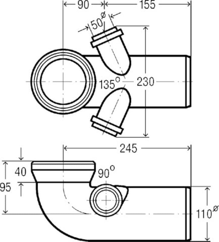 Viega WC komolec 38113 230MM/50 S 2-smerni, BELA (PAKET 1/85) 191801