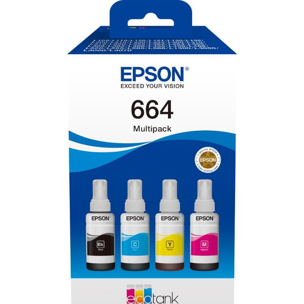 komplet kartuš Epson Ink 664 C13T66464A Original Multipack Večbarvna kartuša Za tiskalnike Epson Zmogljivost: 4×70 ml Izdelek: 4500 strani črno-belih / 7500 strani barvnih Teža 390 g Barva črna, &helliplip; Celoten opis