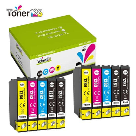Toner123 Komplet Epson T1281 +T1282 + T1283 + T1284 kompatibilne kartuše (10) - 4× črna, 2× cyan, 2× magenta, 2× rumena