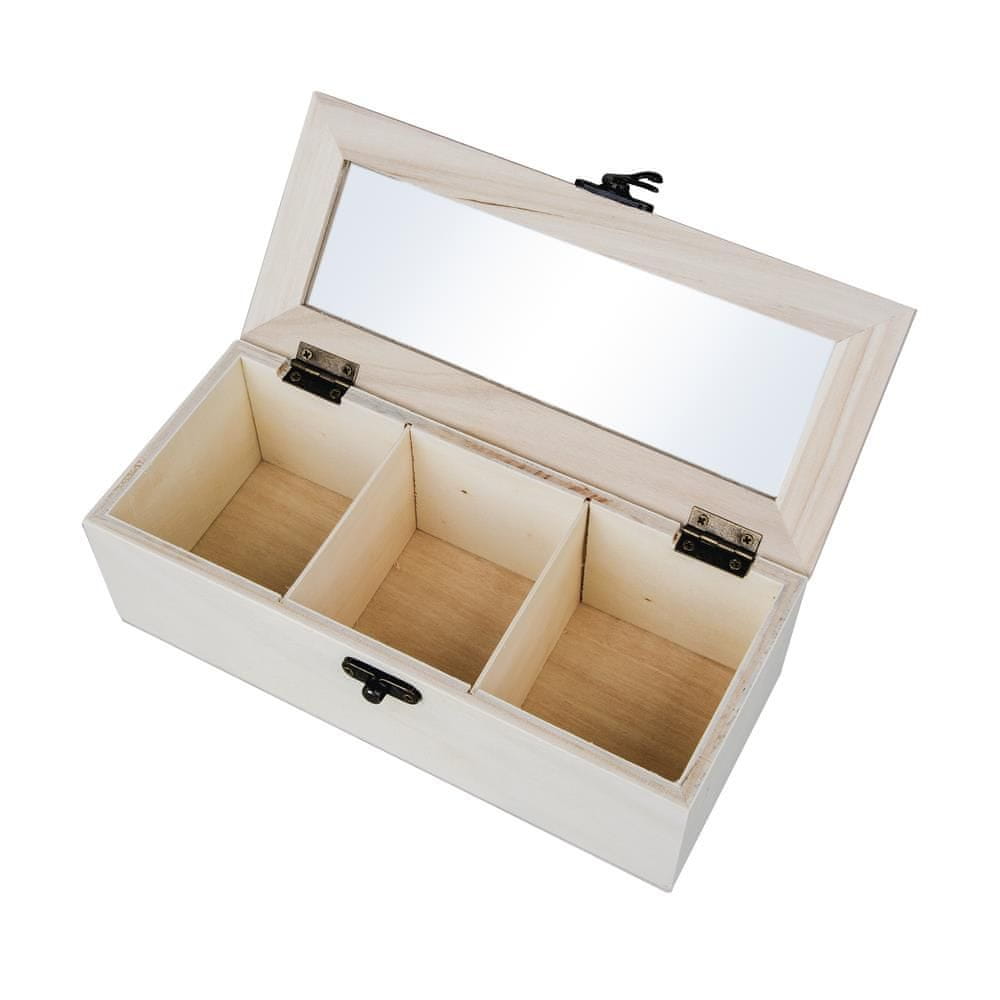 Rayher. Lesena škatla za čaj, 21.5x9x7cm, 3 prekati