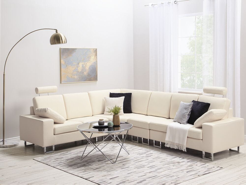 Beliani Bež usnjena zofa z vogalnim kavčem, originalna STOCKHOLM