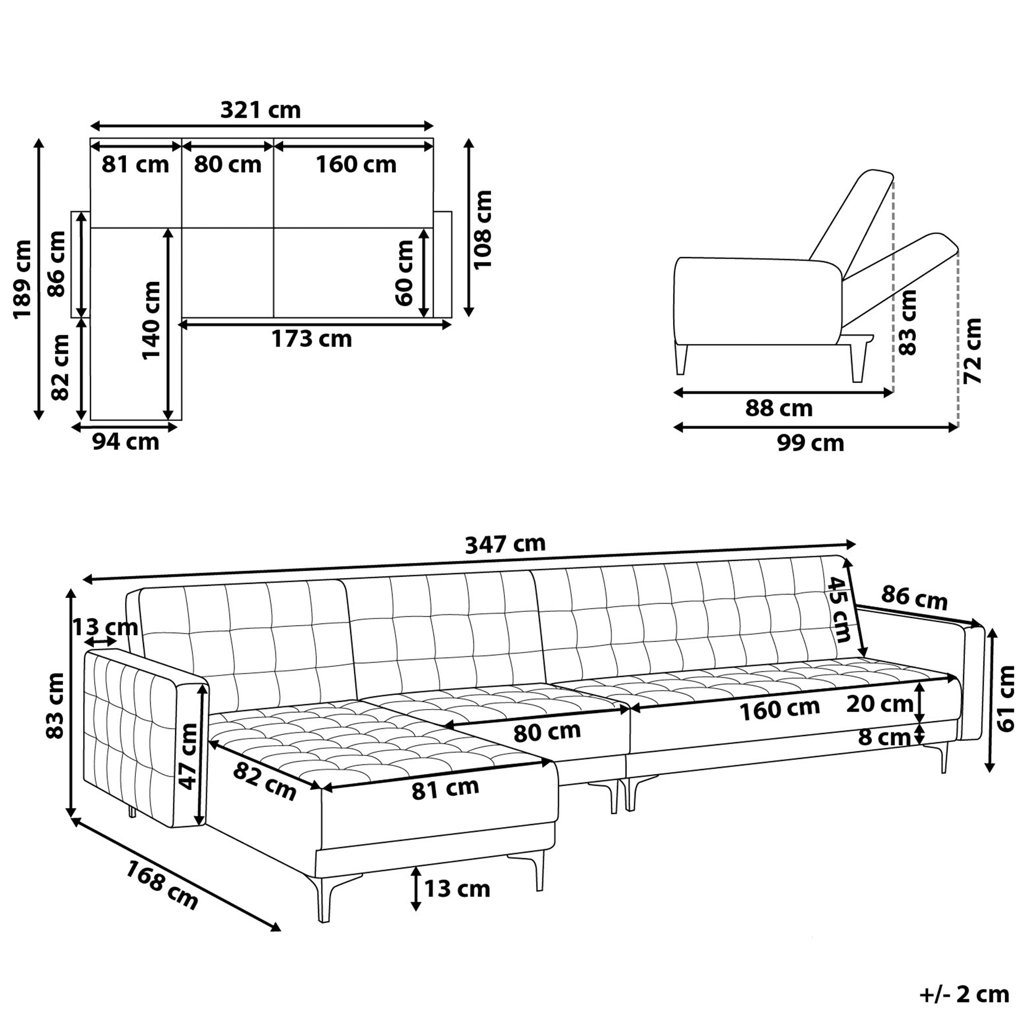 Beliani Modularna desna stranska raztegljiva sedežna garnitura temno modri žamet ABERDEEN
