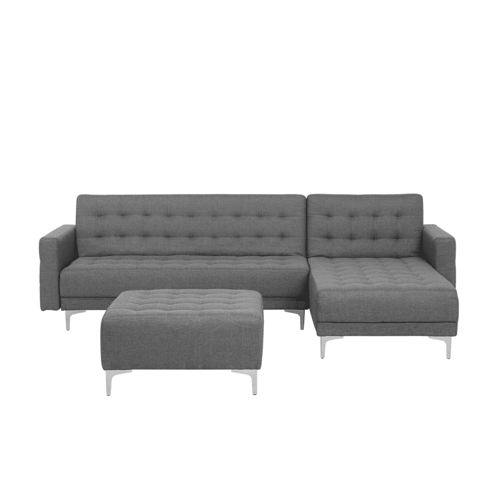 Beliani Svetlo sivo oblazinjen raztegljiv kavč v obliki črke L s taburejem, leva stran ABERDEEN