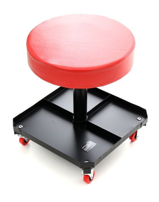 Za večjo udobnost uporabe je celotno orodje vrtljivo za 360°, sedež pa je opremljen s polico za orodje, ključe in vijake, ki se uporabljajo med delom. Naj vas ne skrbi orodje, ki leži na tleh!