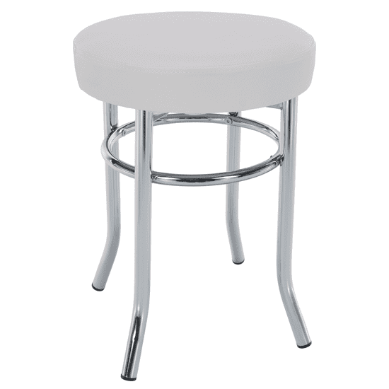 Stolček IRENA, kovinski krom / belo usnje Odpornost tkanine proti obrabi po testu Martindale: 100 000 odrgnin Višina sedeža: 43 cm, premer: 40 cm. Dobavljeno v razstavljeni obliki. Celoten opis