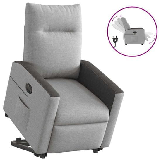 Vidaxl Električni naslanjač s funkcijo vstajanja svetlo siv blago