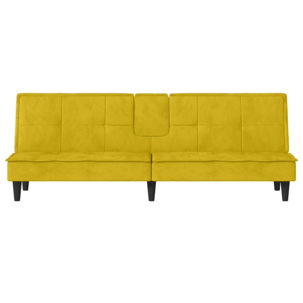 Vidaxl Raztegljiv kavč z držali za skodelice rumen žamet