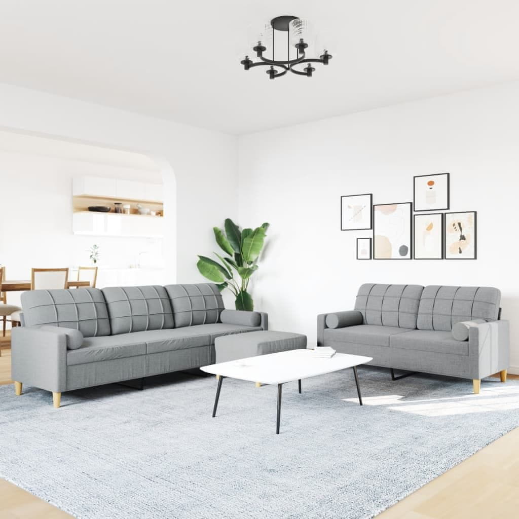 Vidaxl Sedežna garnitura 3-delna s stolčkom in blazinami svetlo siva