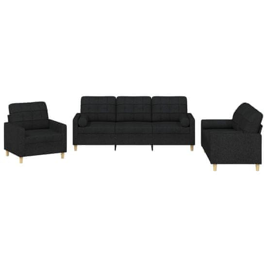 Vidaxl Sedežna garnitura 3-delna z vzglavniki črno blago