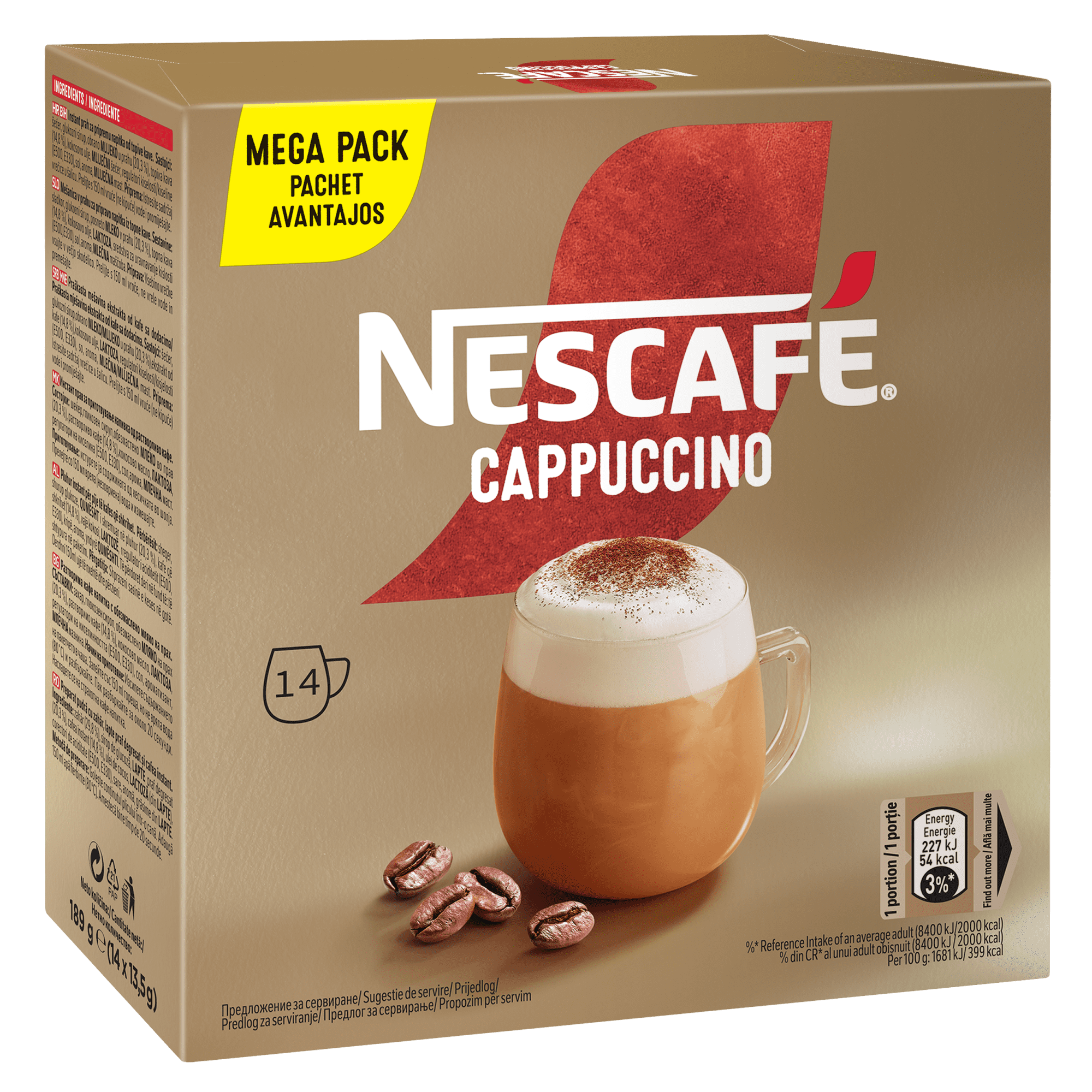 NESCAFÉ Cappuccino instant kava, 14×13,5 g (XXL pakiranje)