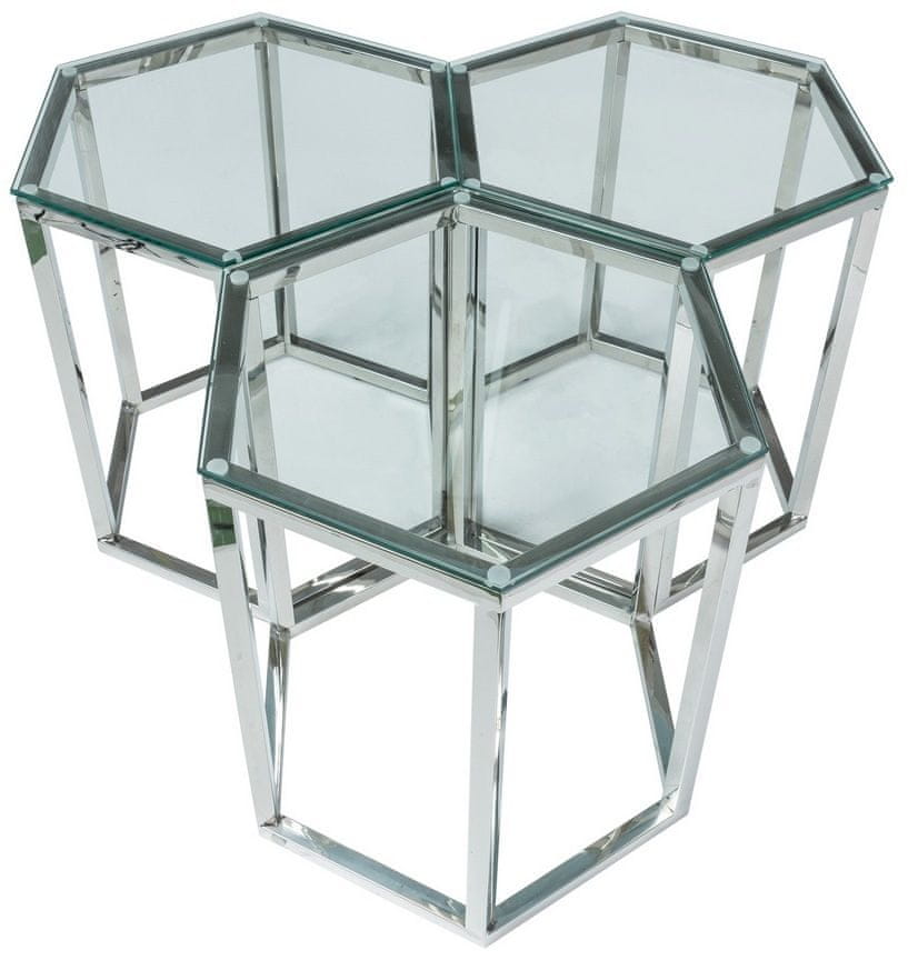 Kavna mizica v sodobnem glamur slogu. Konstrukcija je izdelana iz nerjavečega jekla, zgornja plošča pa iz kaljenega stekla. Ta eleganten kos z nekonvencionalnim dizajnom bo izstopal v vsaki notranjosti. Dobavljamo v razstavljenem stanju.