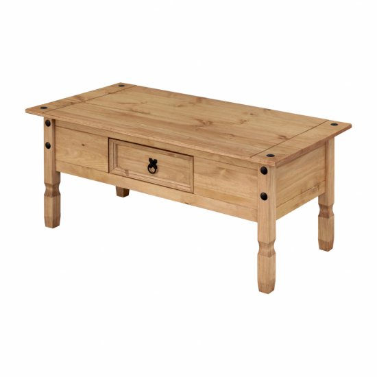 material masivni bor, voskan v medenem odtenku 1 predal, kovinski okrasni ročaji del kompleta Corona 3