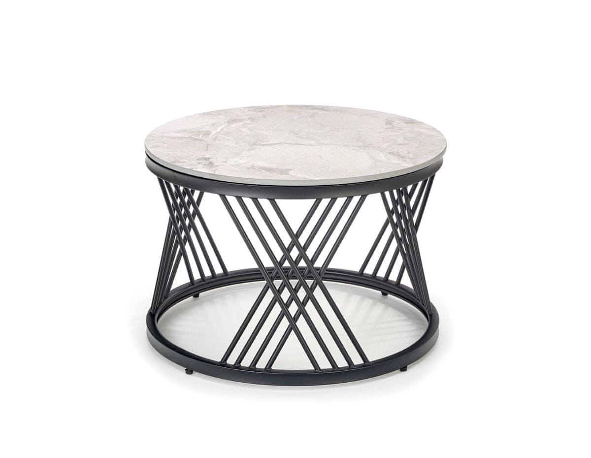 Halmar Okrogla klubska mizica (2 kosa) Flamingo - siv marmor / črna