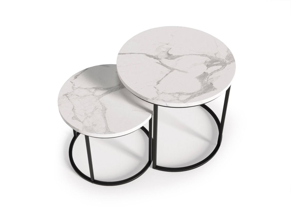 Halmar Okrogla klubska mizica (2 kosa) Oreo - beli marmor / črna
