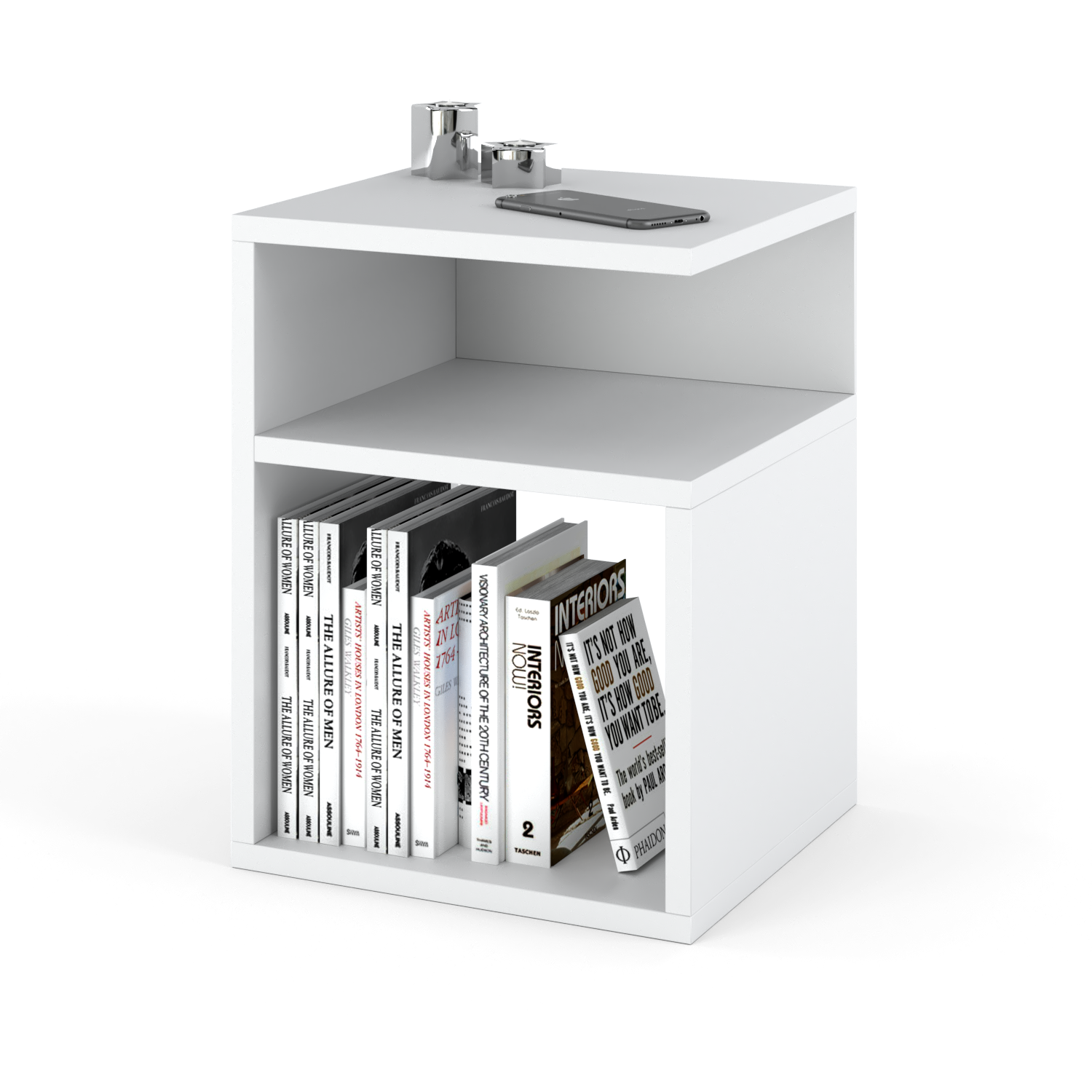 Nočna omarica ima 2 polici, na katerih lahko shranite vse vaše bistvene stvari, kot so knjige, kozarci ali polnilci, kar omogoča enostaven dostop, ne da bi morali vstati iz postelje.