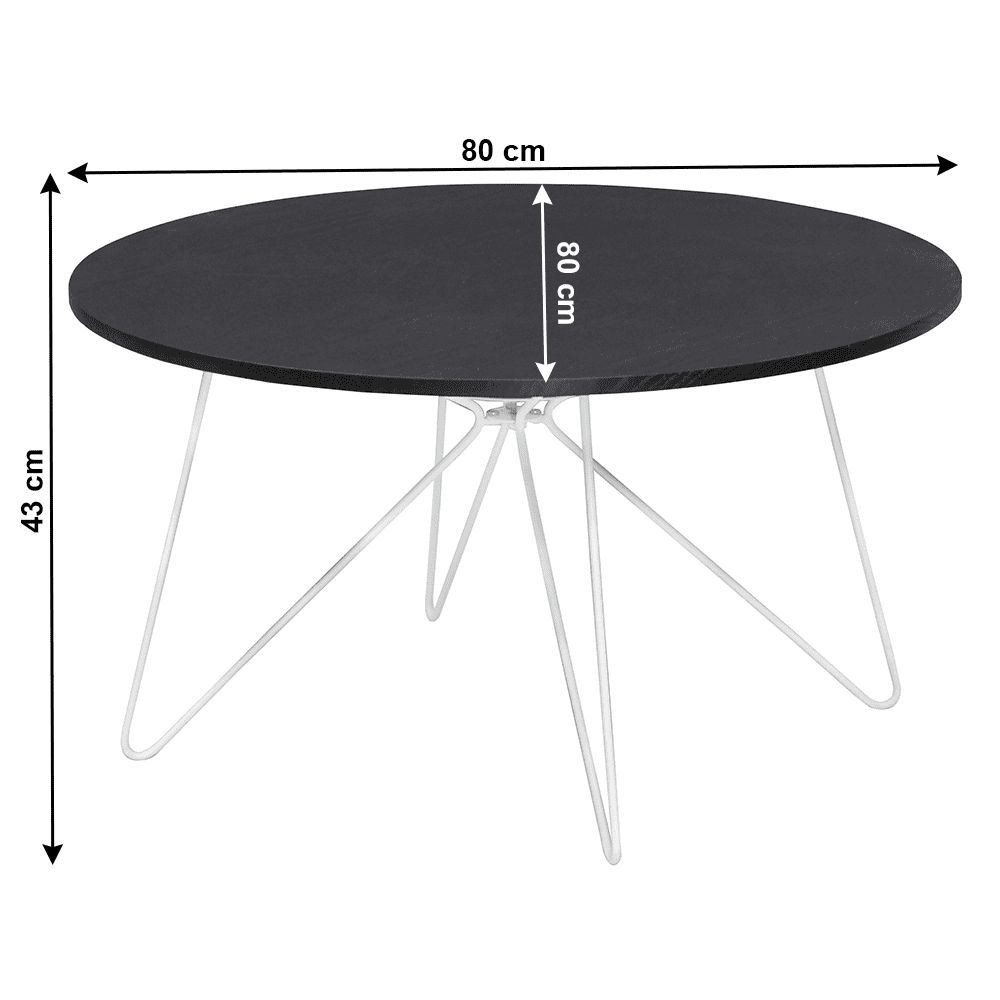 Kavna mizica. Material: mdf / kovina Barva: črna / bela Dimenzije (ŠxVxV): 80×80×43 cm Debelina materiala: 15 mm Nosilnost: 7 kg Dostava v razstavljenem stanju Celoten opis