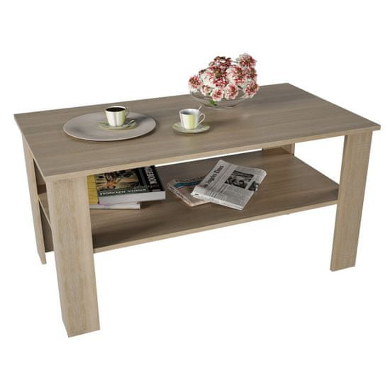 Moderna klubska mizica GAUDI je praktična mizica s polico za shranjevanje pod zgornjo ploščo. Miza je visokokakovosten slovaški izdelek iz laminata DTD (16 mm) v barvi hrasta sonoma, na voljo pa so tudi druge barve.