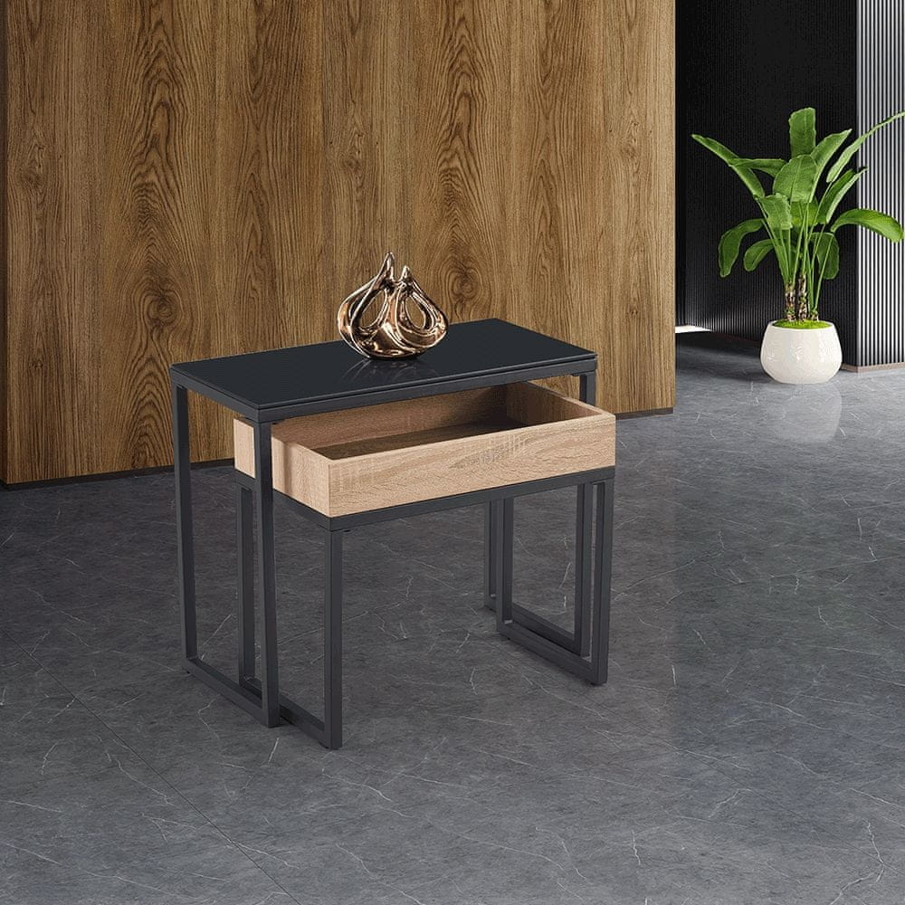 KONDELA Konferenčna miza (2 kosa) Dagor - črna / hrast