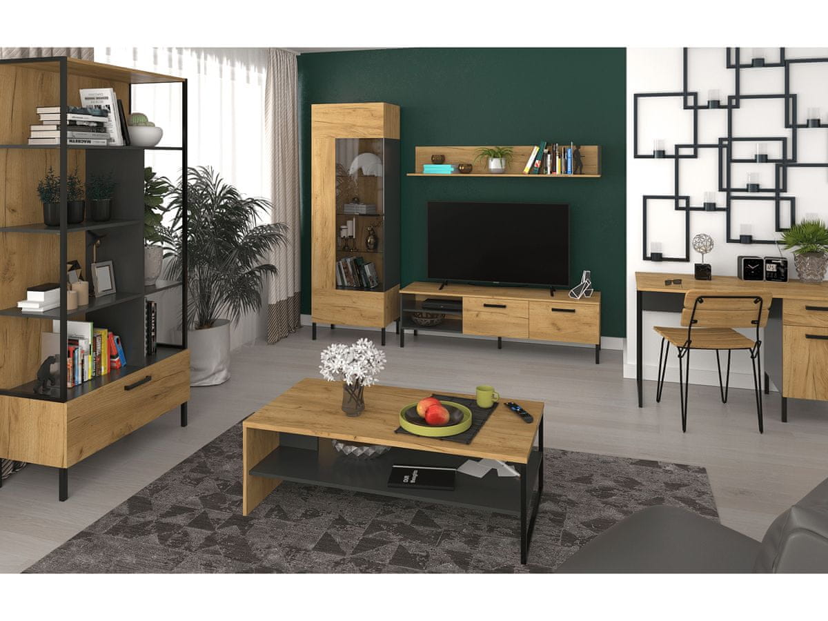 Klubska mizica Santana 120 v elegantni hrastovi barvi zlata in antracita je idealen dodatek k sodobni notranjosti. Ta stilski kos pohištva znamke KONDELA odlikujeta oglata oblika in temen barvni dizajn, ki daje prostoru prefinjen videz.
