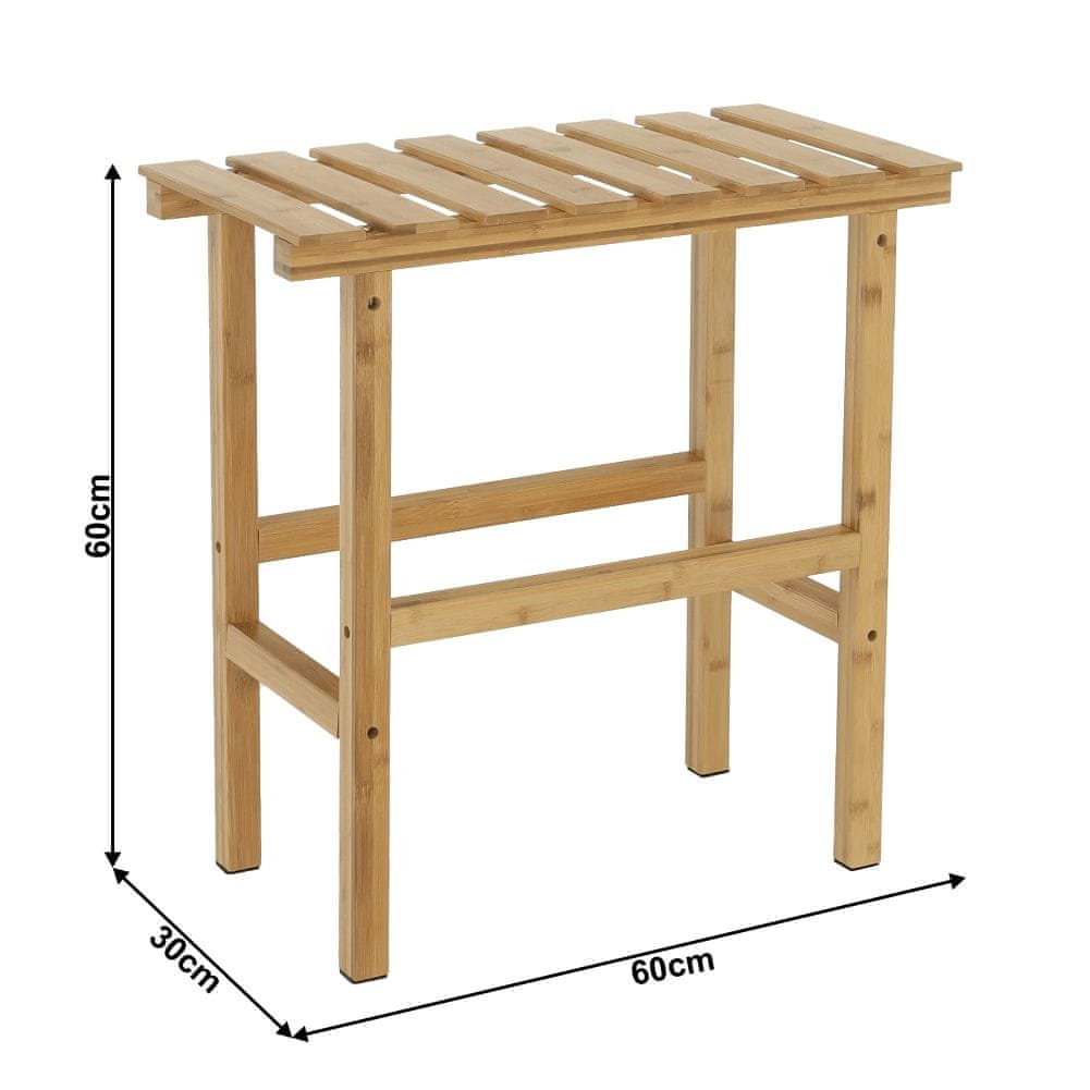 Lesena stranska mizica za masažni bazen Vireo Type 2 v naravnem dizajnu je idealen dodatek k vašemu interierju. Ta moderna miza, izdelana iz lakiranega bambusa, ne ponuja le estetskega videza, ampak tudi praktičnost. Z merami 60 cm širine, 60 cm višine in 30 cm globine se zlahka prilega različnim prostorom in zagotavlja dovolj prostora za shranjevanje majhnih stvari.
