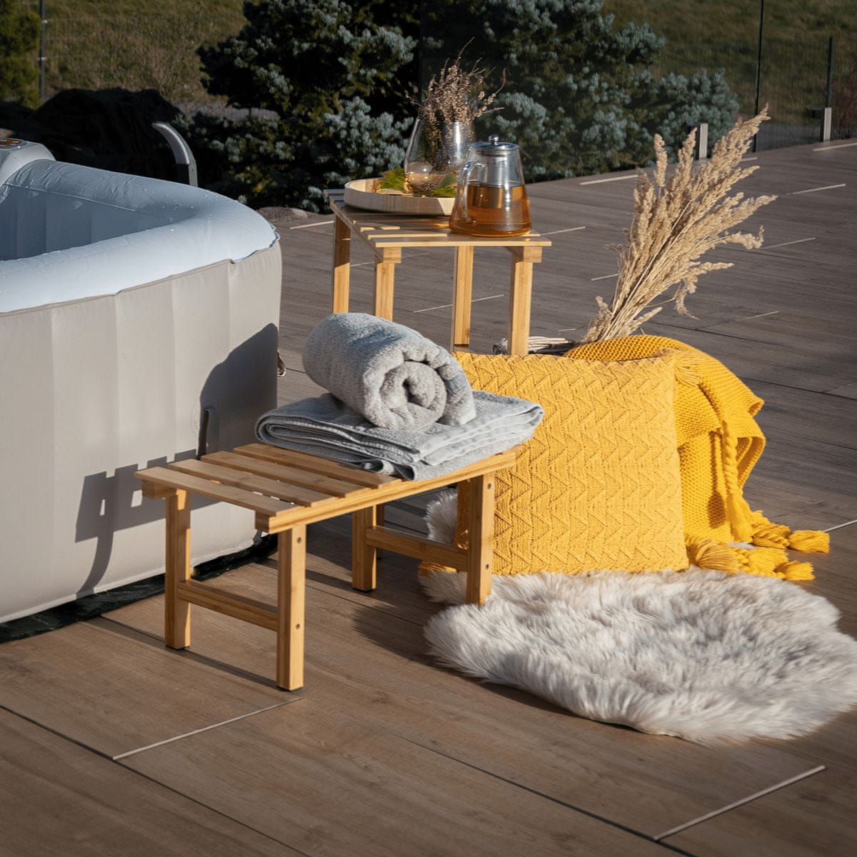 KONDELA Lesena stranska mizica za masažni bazen Vireo Tip 2 - naravna