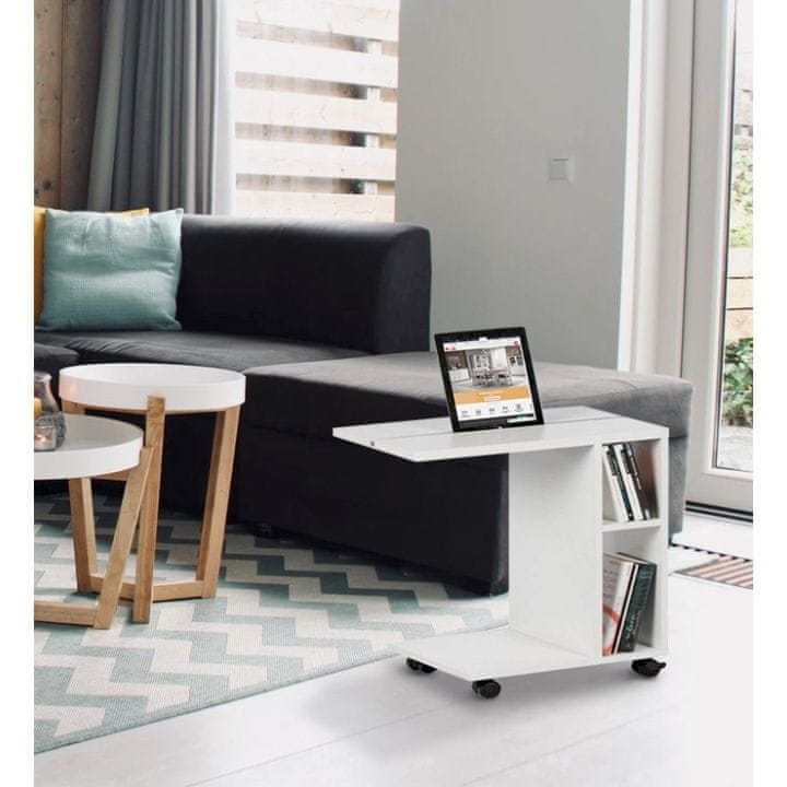 KONDELA Niden pomožna mizica na kolesih - bela