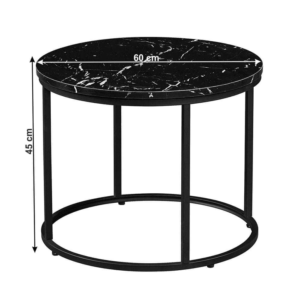 KONDELA Okrogla klubska mizica Gagin - črni marmor / črna