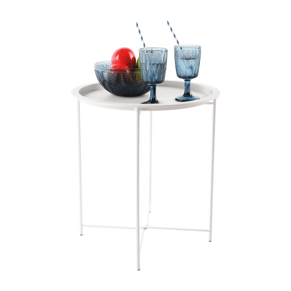 KONDELA Stranska miza z odstranljivim pladnjem, bela, RENDER
