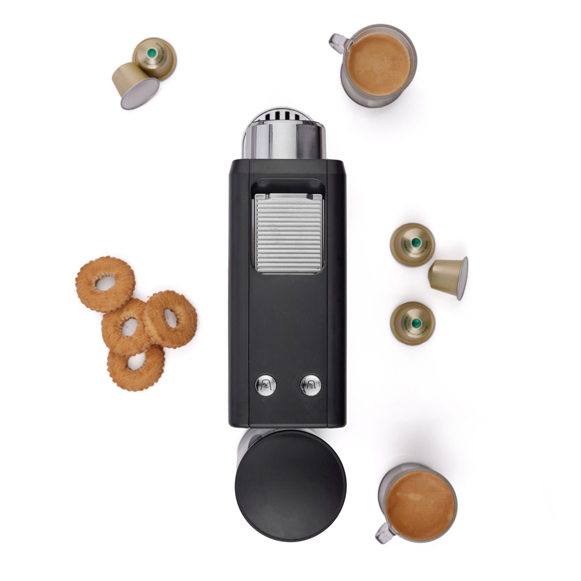 Minimalističen dizajn v atraktivni črni barvi z dodatki kroma se poda v vsako kuhinjo ali kavni kotiček.