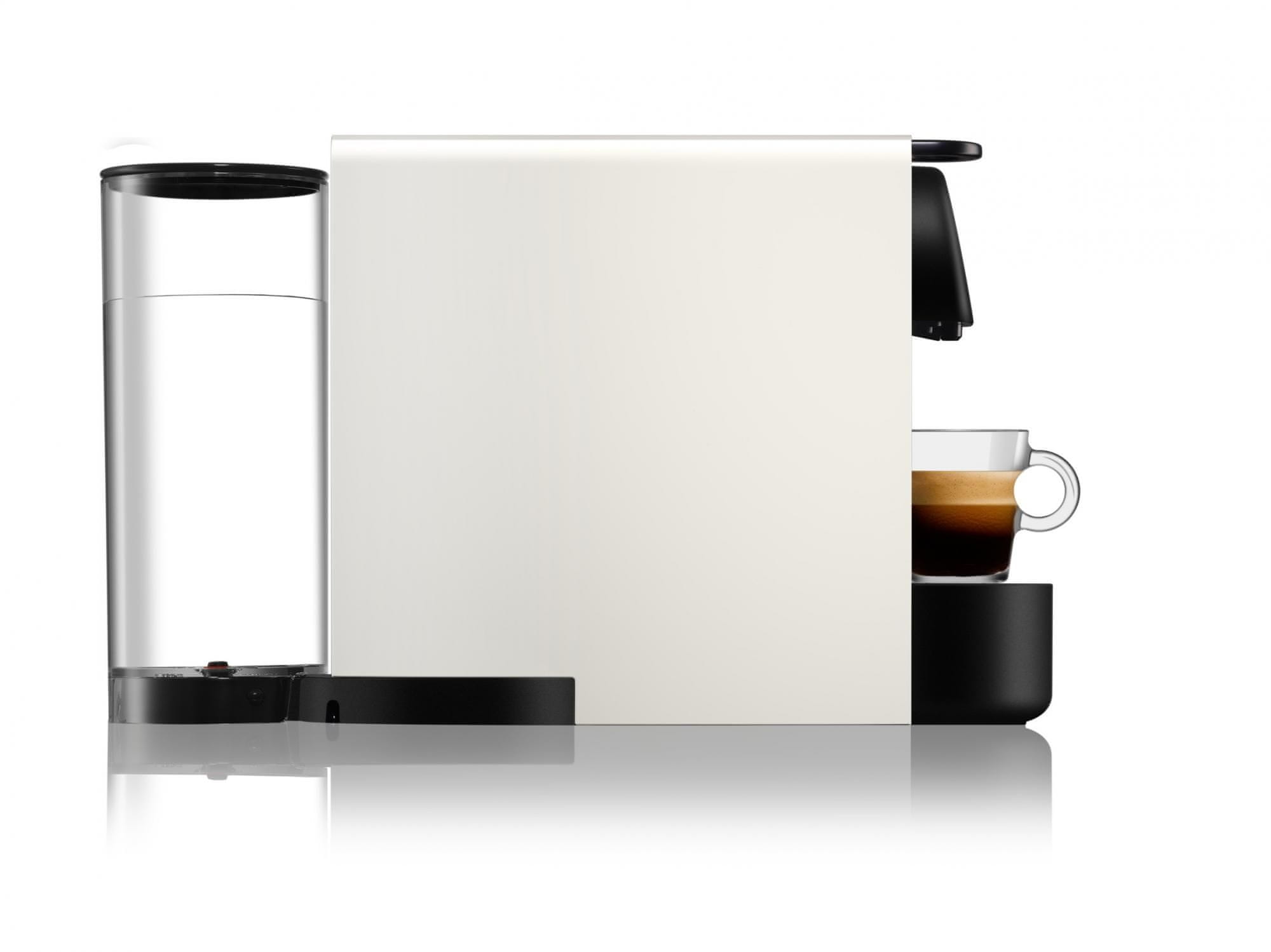 Kavni aparat na kapsule Nespresso KRUPS XN511110 Essenza Plus White & Aeroccino je popoln spremljevalec za vsako kuhinjo. Če želite espresso, lungo, americano ali čaj, samo pritisnite gumb in uživajte v skodelici. Tlak črpalke 19 barov vedno zagotavlja popolno kremo za profesionalne rezultate. Rezervoar za vodo s kapaciteto 1 litra se prilagodi vsaki kuhinji.